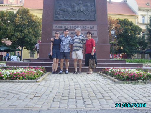 Die Gastfreundschaft ist unglaublich, wir werden in den 4 Tagen umsorgt, serbisch bekocht und dürfen selber nichts tun. Miladin unternimmt mit uns jeden Tag eine neue Reise in die Vergangenheit durch Zrenjanin: wir fahren zum Krankenhaus, in dem Slobo geboren wurde, zu seinem Schulhaus, wo er ein ½ Jahr zur Schule gegangen ist, zu Miladin's Elternhaus, wo Slobo die ersten Schritte gemacht hat. Wir schauen uns die Innenstadt an, das Rathaus, den Park, an den Slobo sich noch erinnert, besuchen das Grab seiner Oma und Tante. Aber auch Orte und Gebäude, die neu sind, besuchen wir – mal mit dem Auto, mal mit dem Fahrrad. Auch für Miladin ist es eine Reise in die Vergangenheit, manche Orte hat auch er jahrelang nicht besucht.
